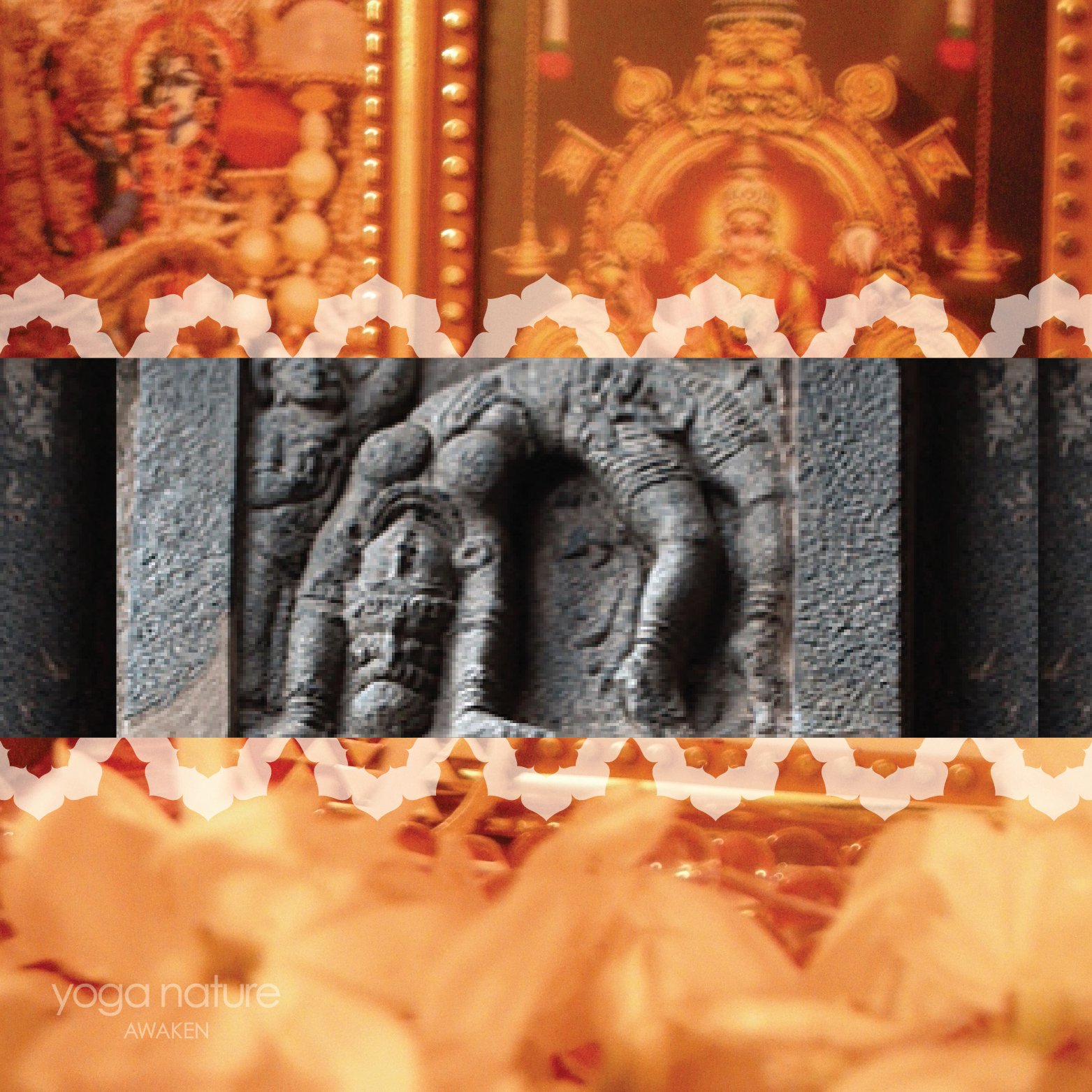 Background image by Mardi: Flowers for Mookambika Devi and Kali Maa, Karnataka, 2012 | Foreground image sourced from Namarupa: Ancient temple Yogasana.